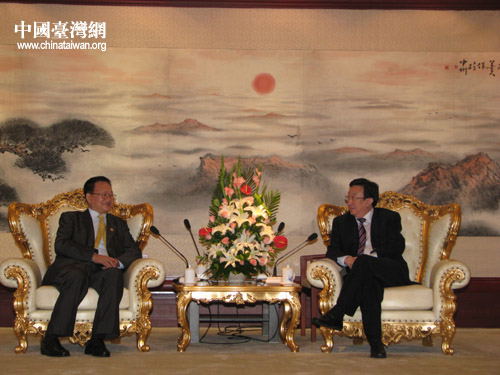 中国台湾网8月27日消息 8月26日上午,中共河南省委副书记、代省长郭庚茂在郑州索菲特国际饭店会见了全国台湾同胞投资企业联谊会会长张汉文先生一行。