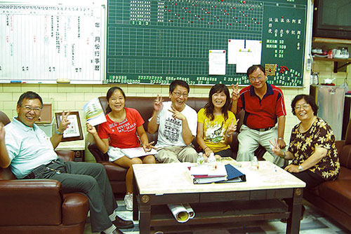 找到黄国栋的资料,大家都很高兴(左二为黄敏、左四为黄湘君、右二为陈育腾)