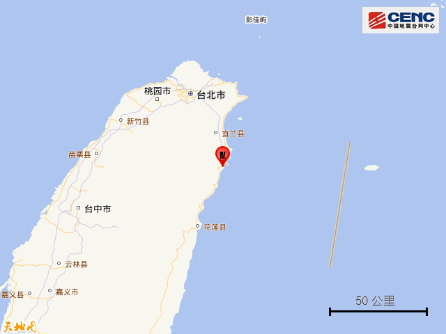 据中国地震台网正式测定,8月15日17时6分在台湾宜兰县发生5.4级地震,震源深度20公里,震中位于北纬24.46度,东经121.82度。
