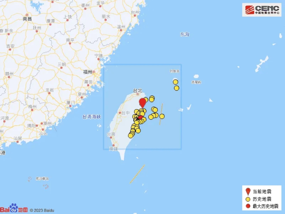 历史地震:根据中国地震台网速报目录,震中周边200公里内近5年来发生4级以上地震共349次,最大地震是2024年4月3日在台湾花莲县海域发生的7.3级地震(距离本次震中73公里),按震级大小前50次历史地震分布如图。