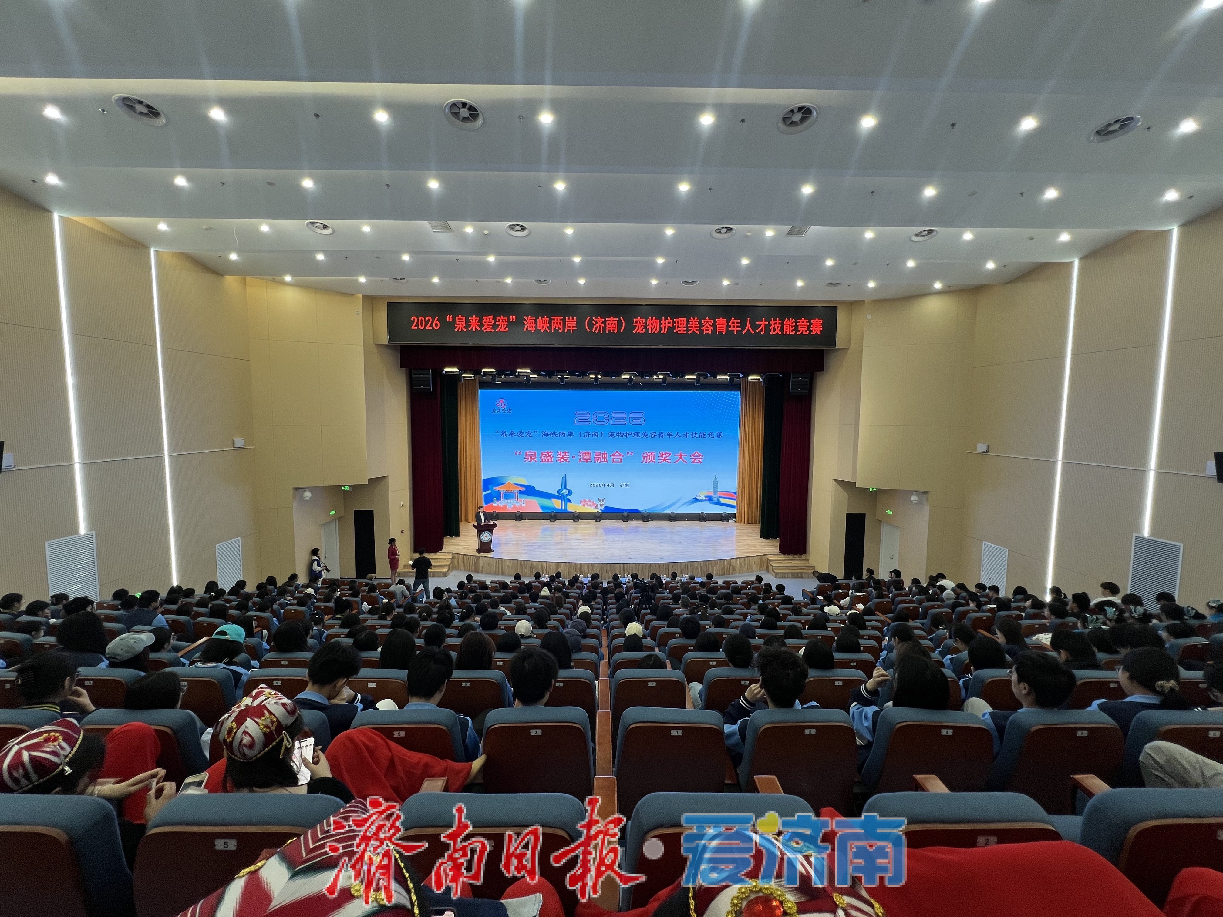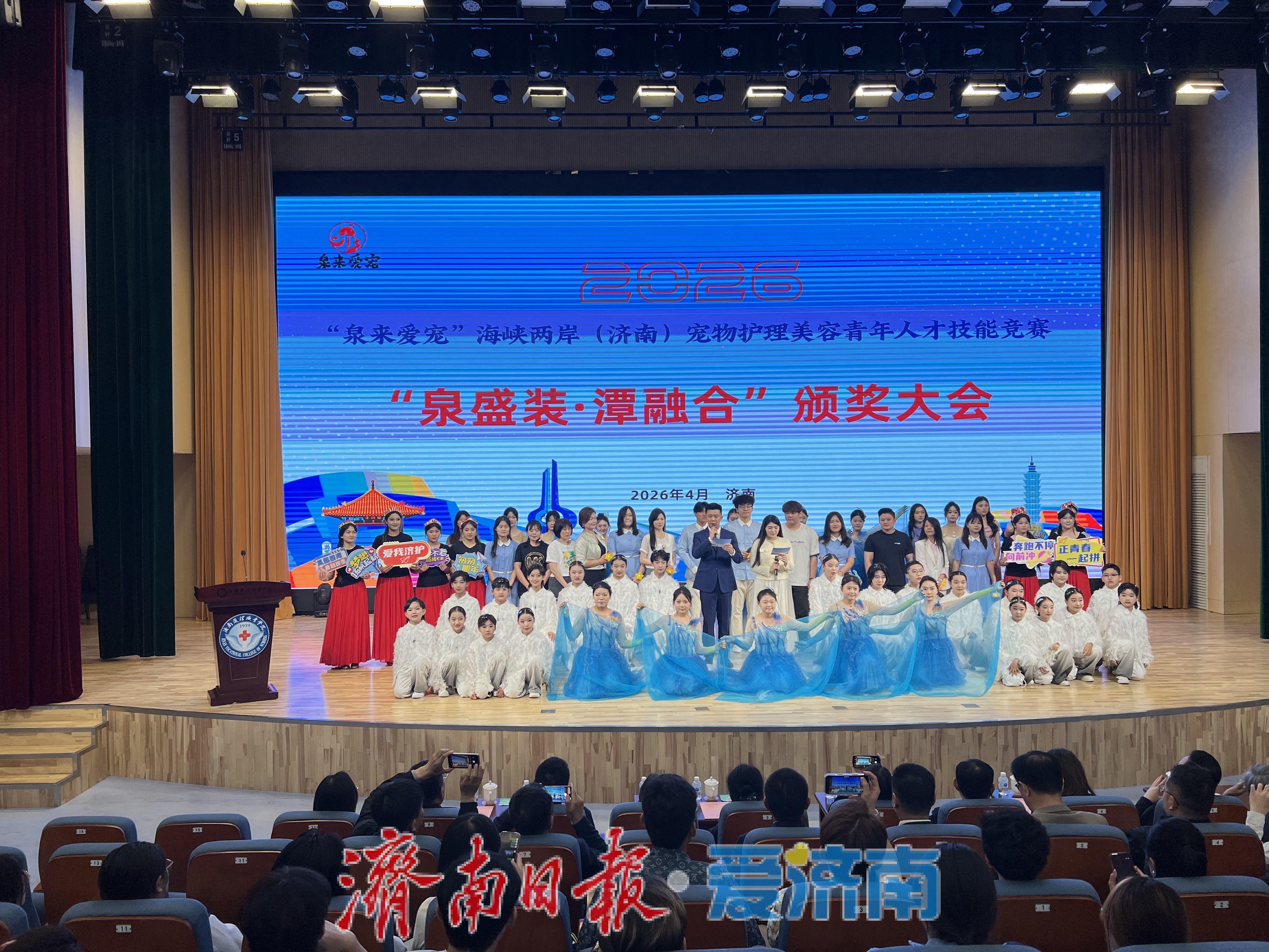 4月26日上午,2026“泉来爱宠”海峡两岸(济南)宠物护理美容青年人才技能竞赛结果揭晓,“泉盛装·潭融合”颁奖大会在济南护理职业学院举行。国务院台办海峡两岸交流中心副主任罗丽民,山东省台办副主任吴莹,济南市台办、济南护理职业学院、市人社局、团市委等主办单位负责同志出席,两岸参赛选手、行业专家及各界嘉宾参加。