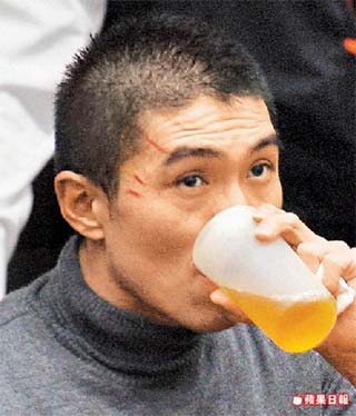 一阵冲突后,国民党“立委”谢国梁脸上挂彩。 来源:台湾《苹果日报》