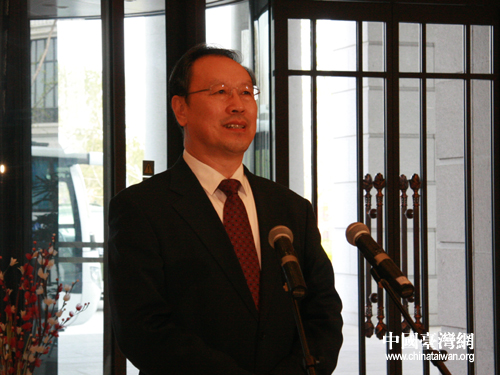 中国台湾网4月9日北京消息 今天,全国政协副主席、中央统战部部长杜青林在北京会见了参加中国和平统一促进会第七届海外统促会会长会的全体人员。