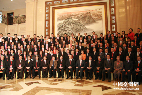 全国政协副主席、中共中央统战部部长杜青林与参加中国和平统一促进会第七届海外统促会会长会的全体人员合影。