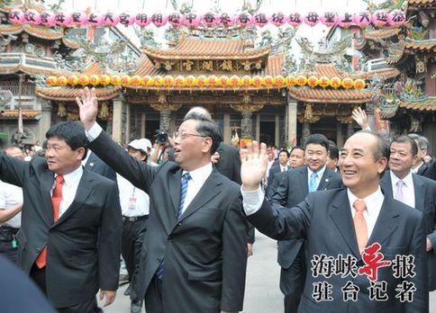 6日,福建省经贸文化交流团台湾之行第二天。交流团的重头戏,一是与合作伙伴做生意,加强两岸经贸合作,二是到台中县大甲镇澜宫拜谒妈祖、上香祈福。