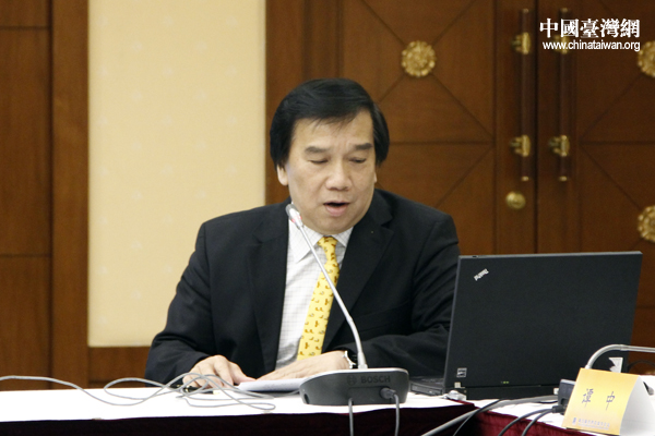 3月23日下午,第五届世界中国学论坛第三圆桌会议上,新加坡国立大学中文系教授李焯然发表主题演讲。(中国台湾网 张洁 摄)