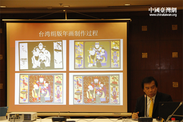 李焯然教授介绍台湾年画的技术创新。(中国台湾网 张洁 摄)