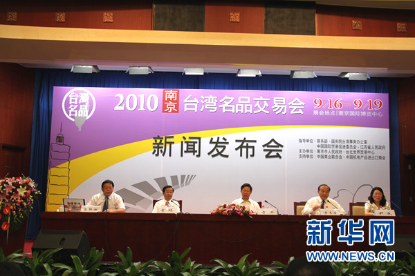 “2010南京台湾名品交易会”8月5日在北京中国贸促会大礼堂召开新闻发布会,由南京市政府与台北世贸中心联合主办的“2010南京台湾名品交易会”将于9月16日至19日在南京国际博览中心举办。这是双方继去年成功合办“南京台湾名品交易会”后的又一次合作。发布会上,南京市副市长李琦、台北世界贸易中心副秘书长黄文荣分别就此次交易会的规模、特色进行了介绍。