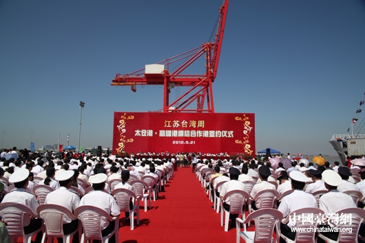 9月21日,江苏太仓港与高雄港缔结合作港签约仪式在太仓港集装箱码头举行。(中国台湾网 钟宝华 摄)