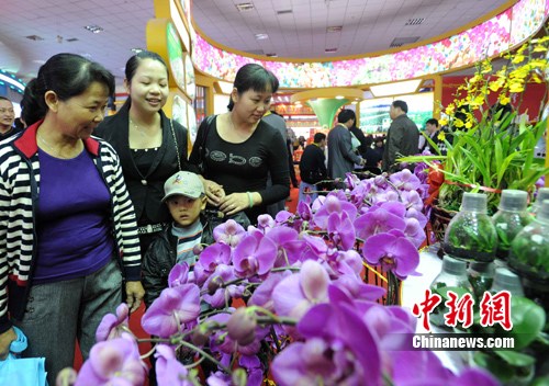 11月18日,第二届海峡两岸现代农业博览会·第十二届海峡两岸花卉博览会在福建漳州东南花都开幕。本届博览会以“花开两岸,合作共赢”为主题,吸引了来自海峡两岸及海内外的1206家企业参展,其中台湾企业有326家。图为第二届农博会台湾农民创业园展区内优质蝴蝶兰绽放,吸引观众眼球。
