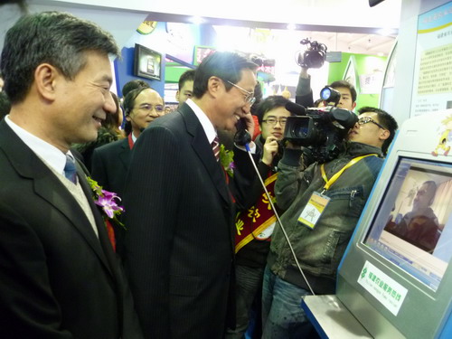 开幕式前,全国政协罗富和副主席在农业部韩长赋部长的陪同下视察了福建展厅。罗富和副主席拿起“福建农业服务热线”终端机上的听筒,通过视频与基层农业专家对话,了解农民信息需求等情况,并称赞农业服务热线的工作人员“你们干得好!”。韩长赋部长也与在线的农业专家亲切交谈,并肯定道“你们很辛苦,做得很好!”。当罗富和副主席了解到海峡农业网是本届博览会唯一的两岸农业信息化交流的展示项目时,他称赞福建展厅的“海峡两岸农业信息化合作交流”亮点突出,特色鲜明。韩长赋部长也予肯定说:“福建搞这个(两岸交流)很有特色”。