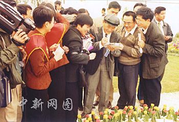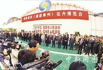 全国政协副主席张克辉等国家和福建省领导参加1999年首届海峡两岸花博会。林忠摄
