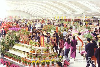 2001年第三届海峡两岸花博会花卉交易中心人头攒动