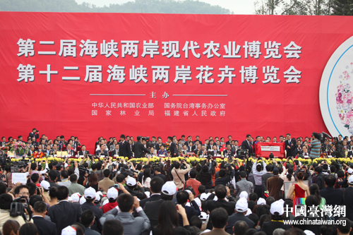 开幕式由福建省常务副省长张昌平主持,中共福建省委副书记、福建省省长黄小晶,农业部副部长高鸿宾,中国国民党副主席蒋孝严先后致辞,随后国台办副主任陈元丰与农业部副部长高鸿宾共同为“两岸农业网”揭牌。