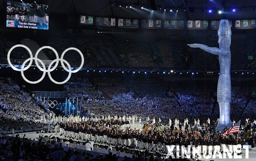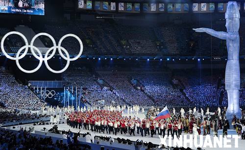 2月12日,第21届冬季奥林匹克运动会开幕式在温哥华举行。这是俄罗斯代表团在开幕式上入场。新华社记者 戚恒 摄