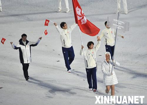2月12日,第21届冬季奥林匹克运动会开幕式在温哥华举行。这是中国香港代表团在开幕式上入场。新华社记者 武巍 摄